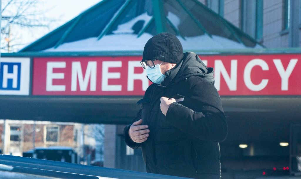 1月28日,一名戴口罩的男子从加拿大多伦多一家医院急诊部楼前经过。新华社发(邹峥摄)